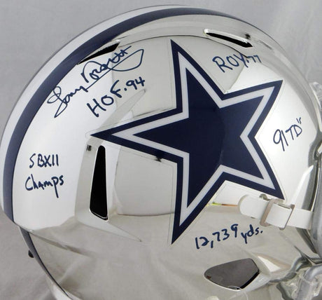 Tony Dorsett Signed Dallas Cowboys F/S Chrome Helmet w/ 5 Insc -JSA W Auth *Blue