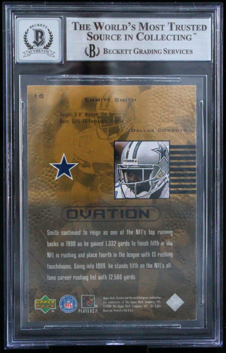 1999 Upper Back Ovation #16 Emmitt Smith Auto Dallas Cowboys BGS Autograph 10