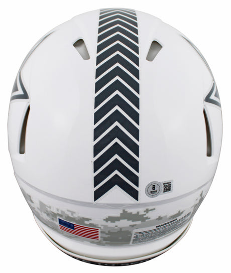 Cowboys Emmitt Smith Signed Salute To Service III F/S Speed Rep Helmet BAS Wit