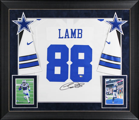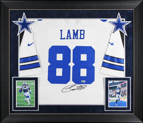 Cowboys CeeDee Lamb Authentic Signed White Nike Game Framed Jersey Fanatics