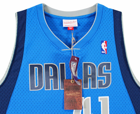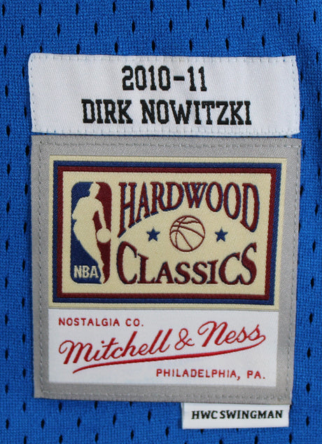 Mavericks Dirk Nowitzki Signed Blue M&N 2010-11 HWC Swingman Jersey BAS