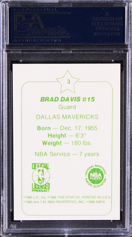 Very low stock (1 unit)$579Unit price /Unavailable Mavericks Brad Davis Authentic Signed 1984 Star #3 Rookie Card PSA/DNA Slabbed
