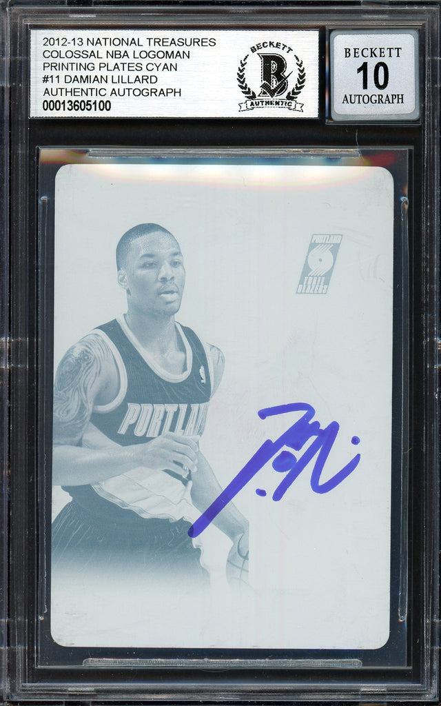Damian Lillard Autographed 2012-13 Panini National Treasures Printing Plate 1/1 Rookie Card #11 Portland Trail Blazers Auto Grade Gem Mint 10 Colossal Logoman Beckett BAS #13605100
