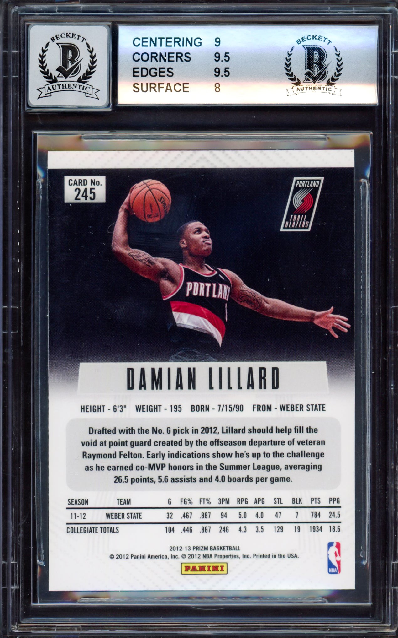 Damian Lillard Autographed 2012-13 Panini Prizm Rookie Card #245 Portland Trail Blazers BGS 8.5 Auto Grade Gem Mint 10 Beckett BAS #15529817