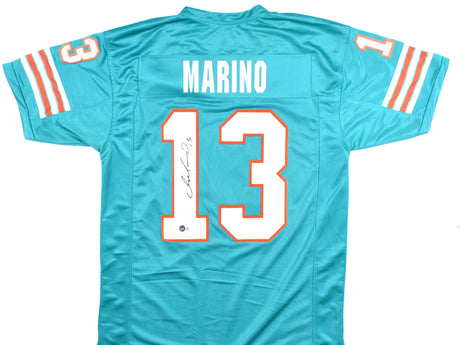 Very low stock (1 unit)$179Unit price /UnavailableDan Marino Autographed Teal Pro Style Jersey - Beckett Hologram *Black