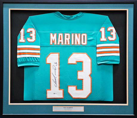 Very low stock (1 unit)$579Unit price /UnavailableDan Marino Miami Signed Framed Custom Teal Football Jersey BAS