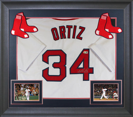 Red Sox David Ortiz Signed White 2004 WS Logo M&N CC Framed Jersey BAS Witnessed