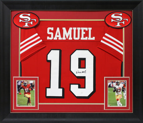 Deebo Samuel Authentic Signed Red Pro Style Framed Jersey w/ Drop Shadow JSA