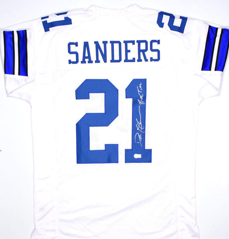 Deion Sanders Authentic Signed White Pro Style Jersey Drop Shadow BAS Witnessed