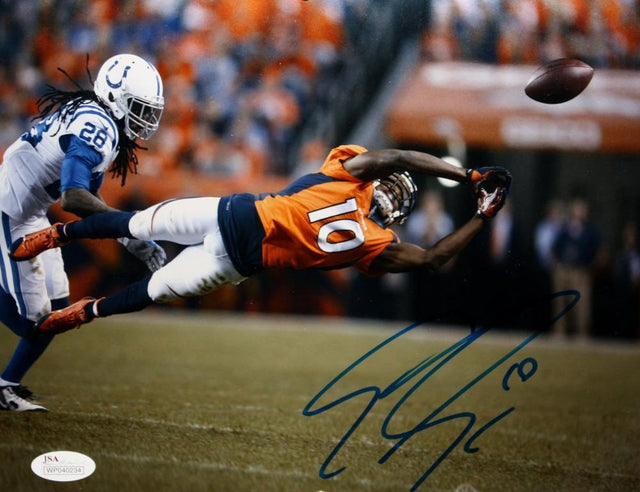 Emmanuel Sanders Autographed Broncos 8x10 Diving for Ball Photo- JSA W Auth