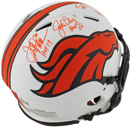 Broncos (5) Elway, Sharpe, Davis +2 Signed Lunar F/S Speed Rep Helmet BAS Wit