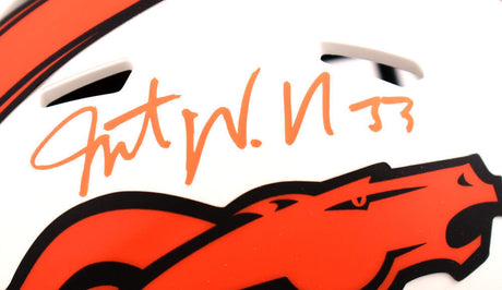 Javonte Williams Signed Broncos Lunar Speed Mini Helmet *Thin -Beckett W Holo