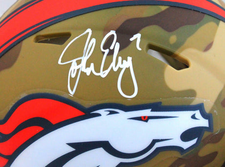 John Elway Autographed Denver Broncos Camo Mini Helmet- Beckett W Hologram *W