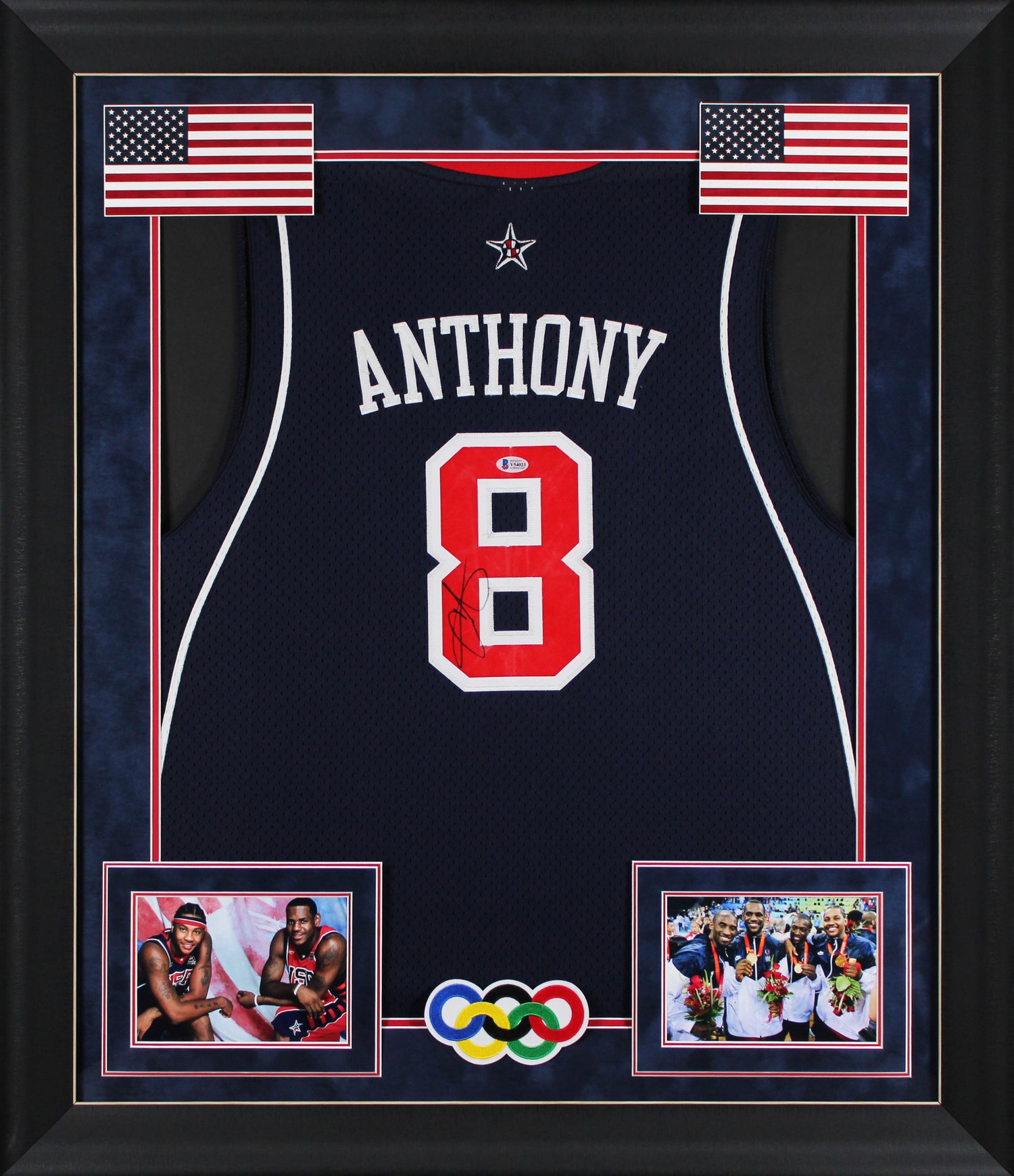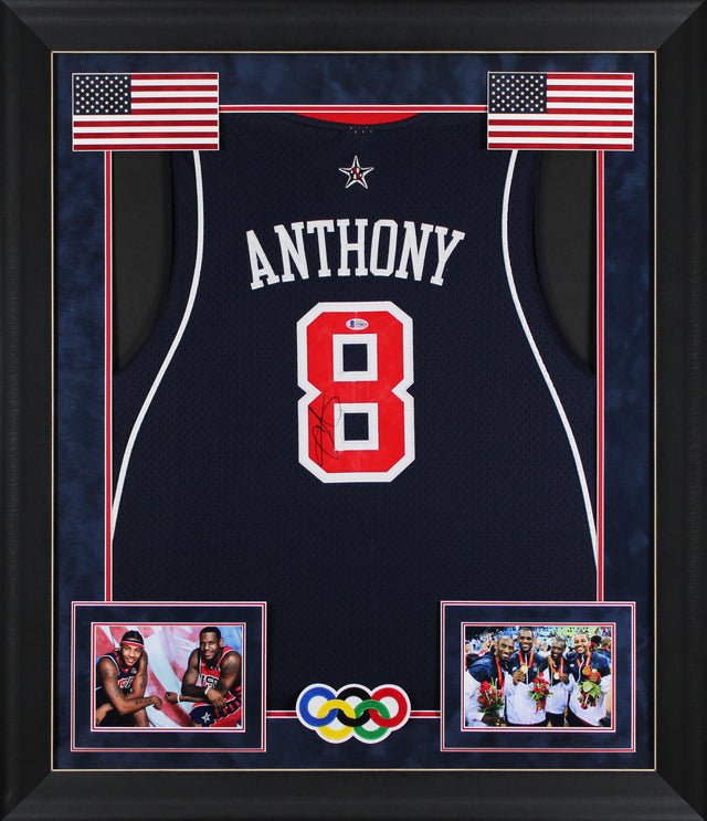 Celebrate a piece of basketball history with this Autographed Navy Blue Team USA Reebok Framed Jersey signed by Carmelo Anthony—a must-have for serious collectors and fans of one of the NBA’s all-time greats. Representing Team USA, this jersey commemorates Carmelo Anthony’s extraordinary international career, where he earned multiple Olympic medals while also dominating as a star for the Denver Nuggets. Professionally framed for display and authenticated by one of the most trusted names in the industry, this item brings iconic moments in U.S. basketball home to your collection.