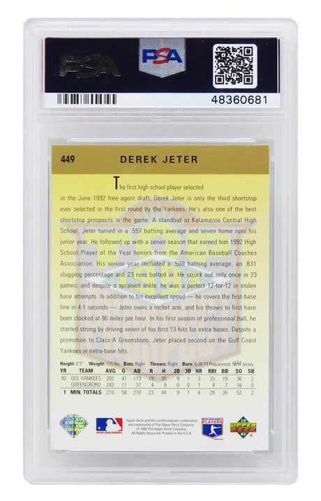 Derek Jeter (New York Yankees) 1993 Upper Deck Baseball RC Rookie Card #449 - PSA 10 GEM MINT