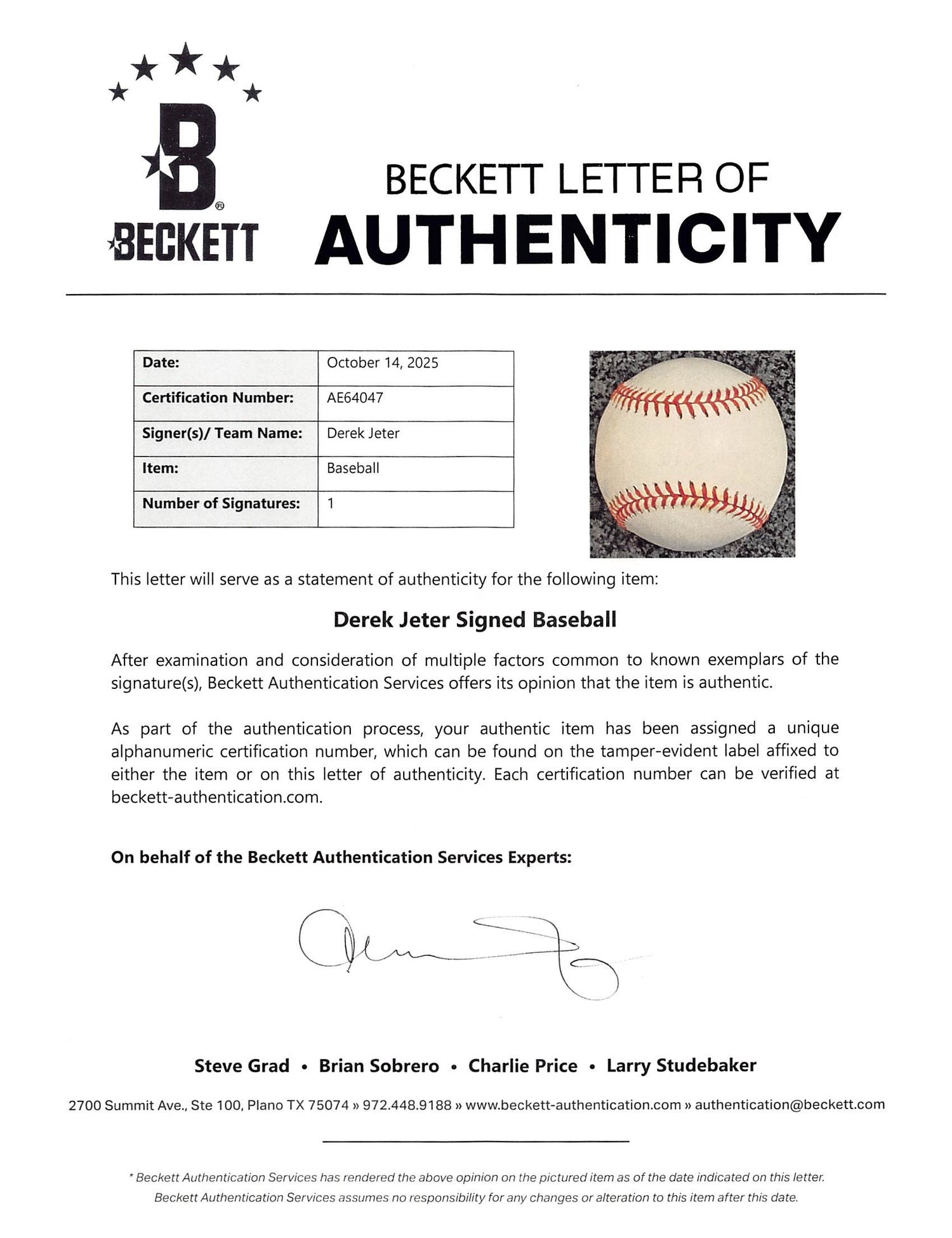 Yankees Derek Jeter Authentic Signed Allen Selig OML Baseball BAS #AE64047 is backordered and will ship as soon as it is back in stock.