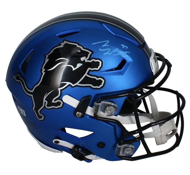 Celebrate the future of the Detroit Lions with this officially licensed Sam LaPorta autographed 2024 Alternate Speedflex Helmet. As one of the breakout stars of the 2023 season, LaPorta has quickly become a fan favorite and a key playmaker in Detroit’s rising roster. This stunning helmet — showcasing the bold 2024 alternate design — is not only a must-have for dedicated Lions supporters but also a valuable piece for serious sports memorabilia collectors.