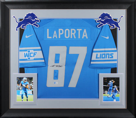 Lions Sam LaPorta Authentic Signed Blue Nike Limited Framed Jersey BAS Witnessed