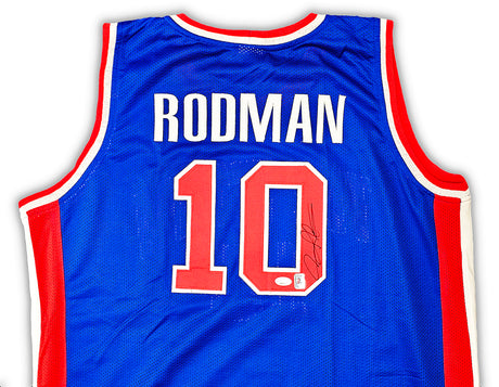 Detroit Pistons Dennis Rodman Autographed Blue Jersey JSA Stock #215742
