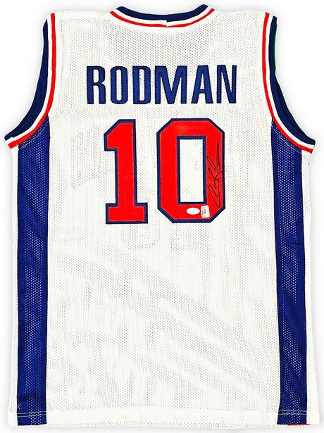 Detroit Pistons Dennis Rodman Autographed White Jersey JSA Stock #215730