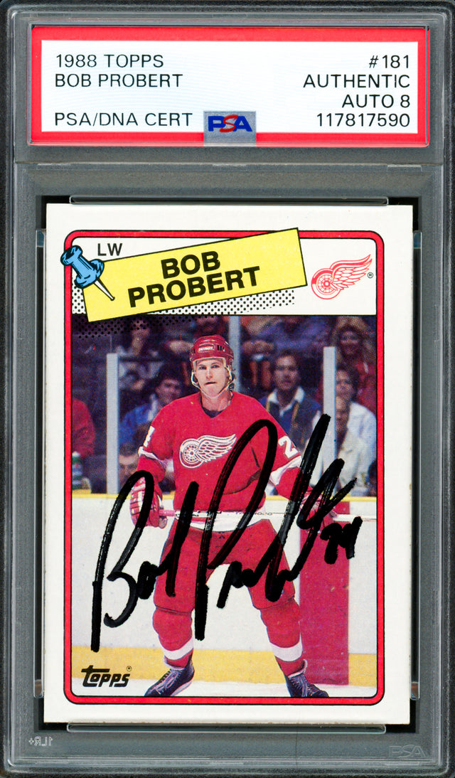 Bob Probert Autographed 1988-89 Topps Rookie Card #181 Detroit Red Wings Auto Grade Near Mint/Mint 8 PSA/DNA #117817590