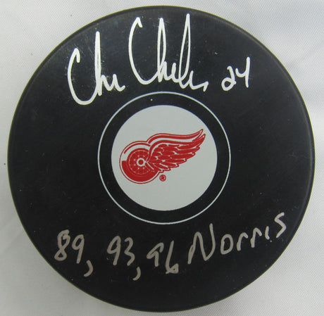 Chris Chelios Signed Auto Red Wings Puck w/ Insc JSA CA73815