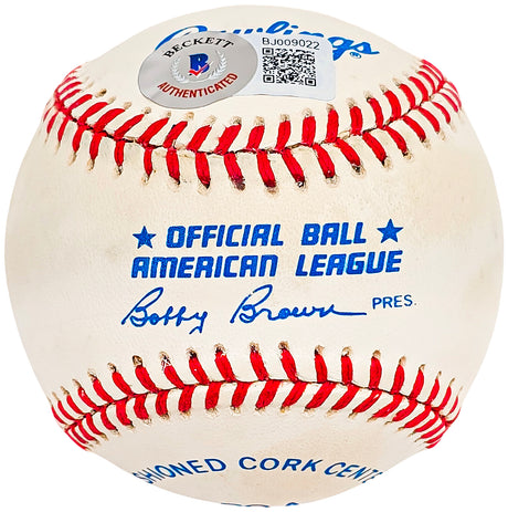 Billy Hitchcock Autographed Official AL Baseball Detroit Tigers Beckett BAS QR #BM17797