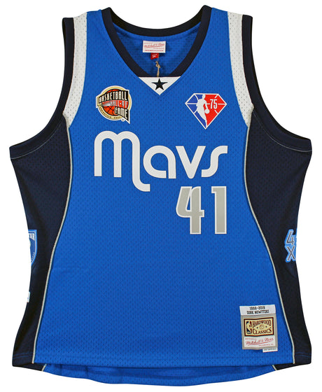 Mavs Dirk Nowitzki Signed Blue M&N HOF Class of 2023 TB HWC Swingman Jersey BAS