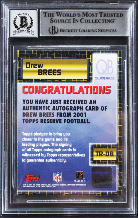 Very low stock (1 unit)$359Unit price /UnavailableChargers Drew Brees Signed 2001 Topps Reserve #TRDB RC Card Auto 10! BAS Slabbed