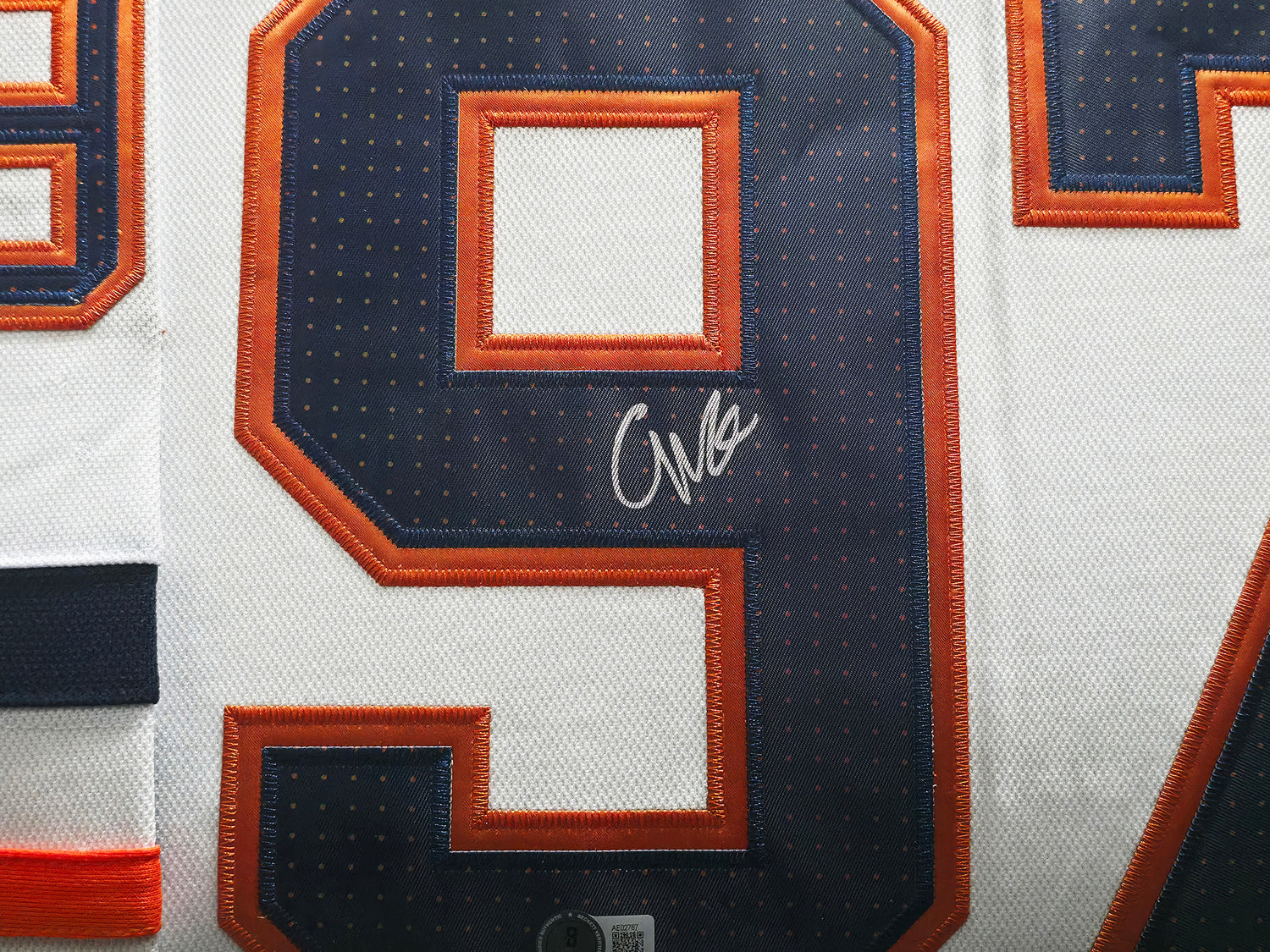 Own a piece of NHL history with this stunning Framed White Adidas Edmonton Oilers Jersey hand-signed by Connor McDavid. Measuring approximately 31x36 inches in its high-quality display frame, this collectible makes an unforgettable centerpiece for any fan cave or memorabilia collection. Connor McDavid, captain of the Edmonton Oilers and one of the most electrifying players in modern hockey, has established himself as a generational talent with countless accolades, including multiple Art Ross Trophies and Hart Memorial Trophy honors. This item is not only a tribute to his achievements but a rare investment for true hockey enthusiasts.