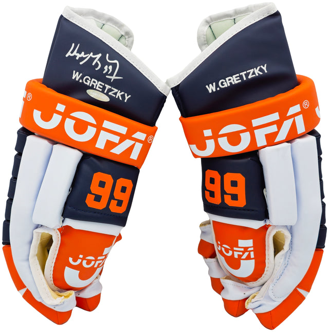 - Authentic Jofa 1989 hockey gloves in classic navy blue and orange — a nod to Gretzky’s era of dominance.