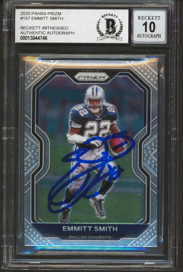 Cowboys Emmitt Smith Signed 2020 Panini Prizm #157 Card Auto 10! BAS Slabbed is backordered and will ship as soon as it is back in stock.