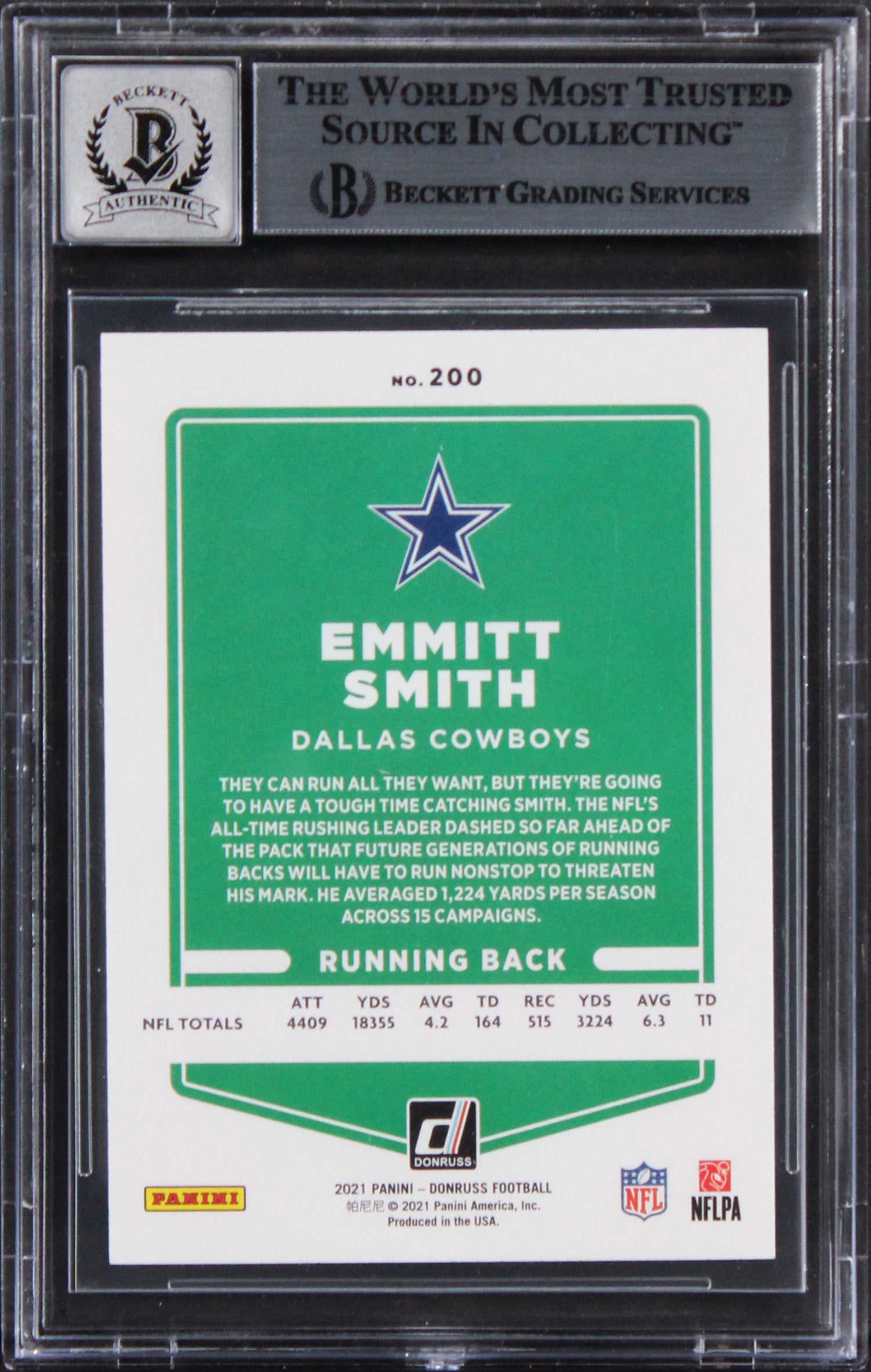 Cowboys Emmitt Smith Signed 2021 Donruss #200 Card Auto Graded 10! BAS Slabbed