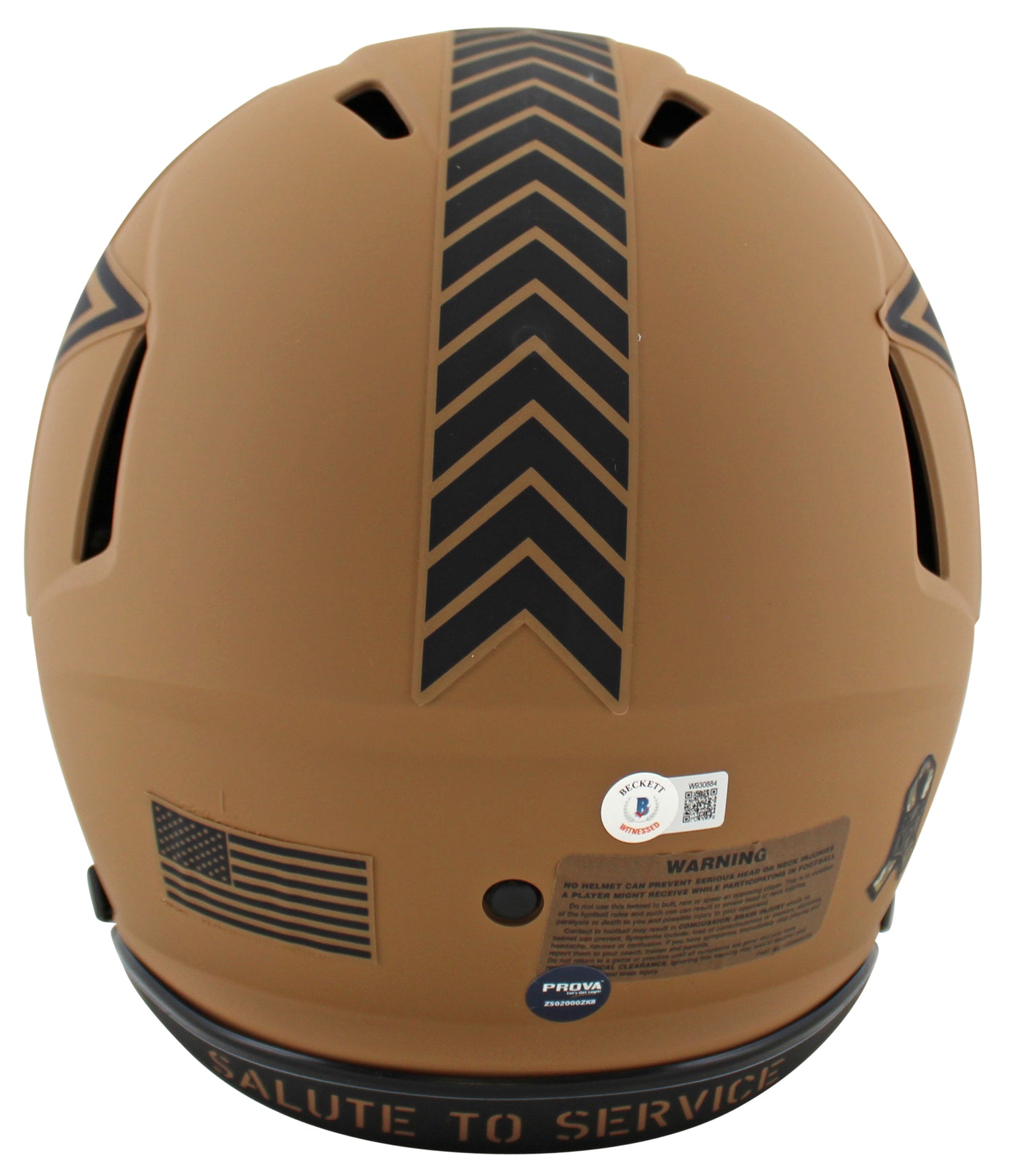 Own a piece of Dallas Cowboys history with this Autographed Alternate 2023 Salute to Service II Riddell Authentic Full-Size Speed Proline Helmet, personally signed by Emmitt Smith—the NFL’s all-time leading rusher and a Cowboys legend. This exceptional collectible is a must-have for Cowboys fans and sports memorabilia collectors alike.