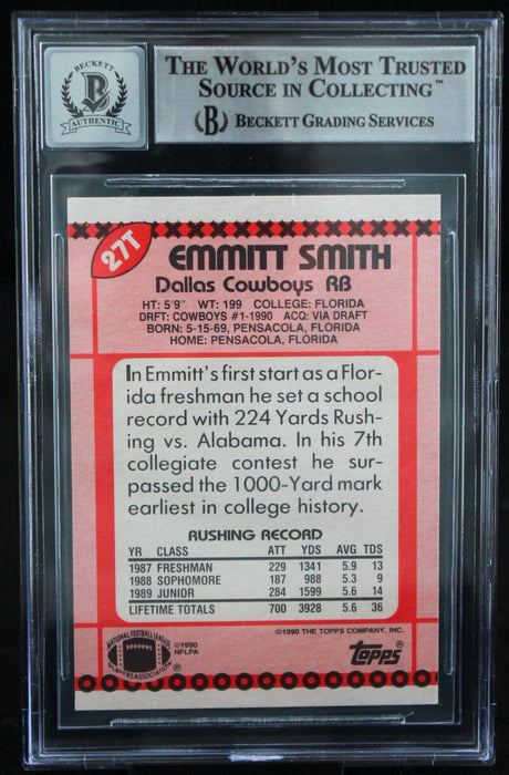 1990 Topps Traded #27T Emmitt Smith Auto Dallas Cowboys BGS Autograph 10