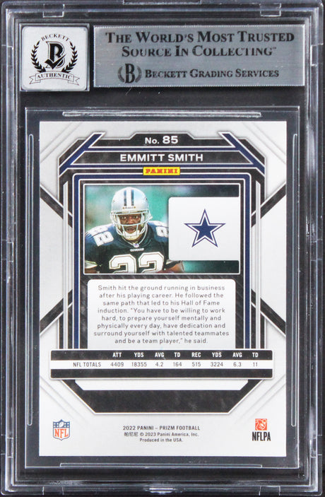 Cowboys Emmitt Smith Signed 2022 Panini Prizm #85 Card Auto 10! BAS Slabbed