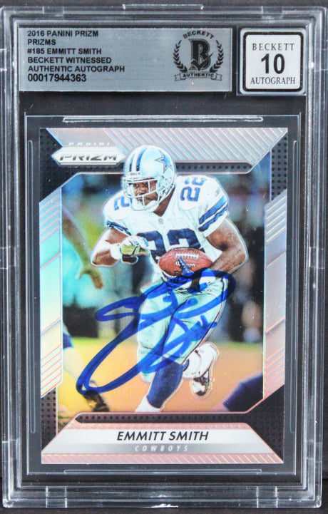 Cowboys Emmitt Smith Signed 2016 Panini Prizm #185 Card Auto 10! BAS Slabbed