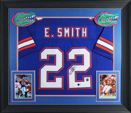 Florida Emmitt Smith Authentic Signed Blue Pro Style Framed Jersey BAS Witnessed