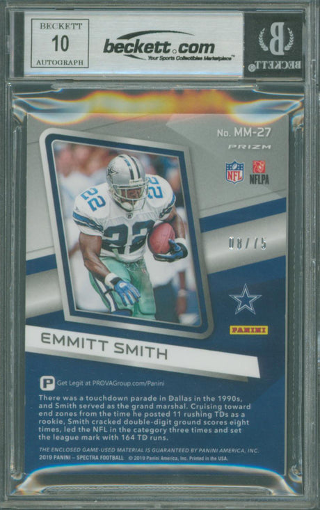 Cowboys Emmitt Smith Signed 2019 Panini Spectra Materials NB #27 Card BAS Slab