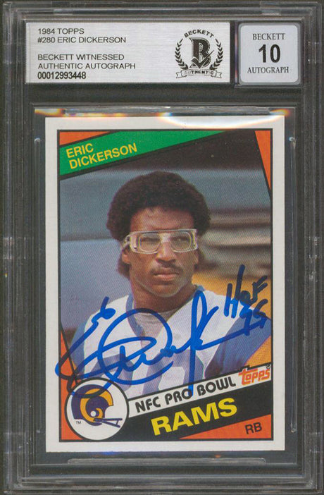 1984 Topps #280 Eric Dickerson RC w/ "HOF" Insc. Rams BGS Autograph 10
