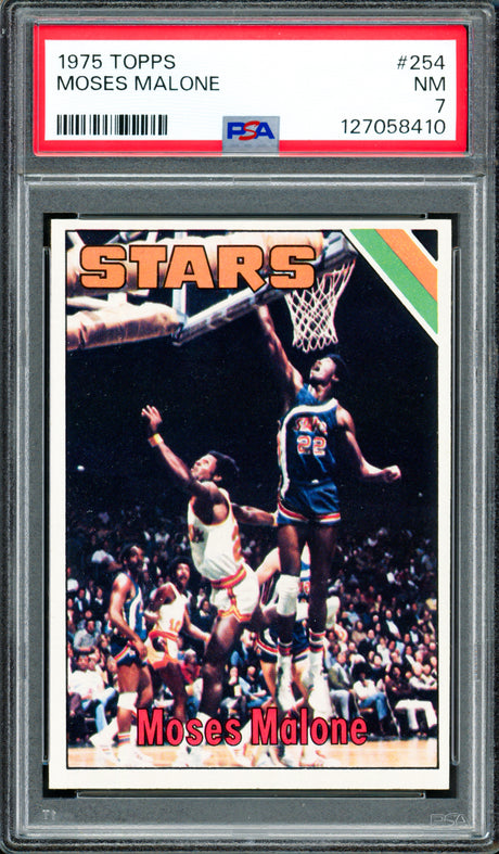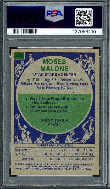 Moses Malone Autographed 1975 Topps Rookie Card #254 Utah Stars PSA 7 PSA/DNA #127058410