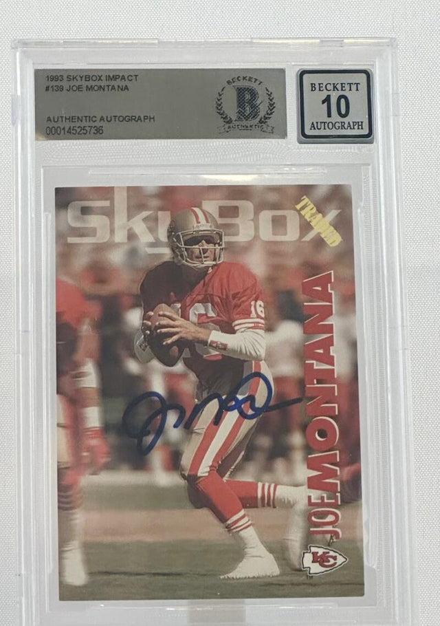 1993 Skybox Impact #139 Joe Montana Auto Kansas City Chiefs BGS Autograph 10 is backordered and will ship as soon as it is back in stock.