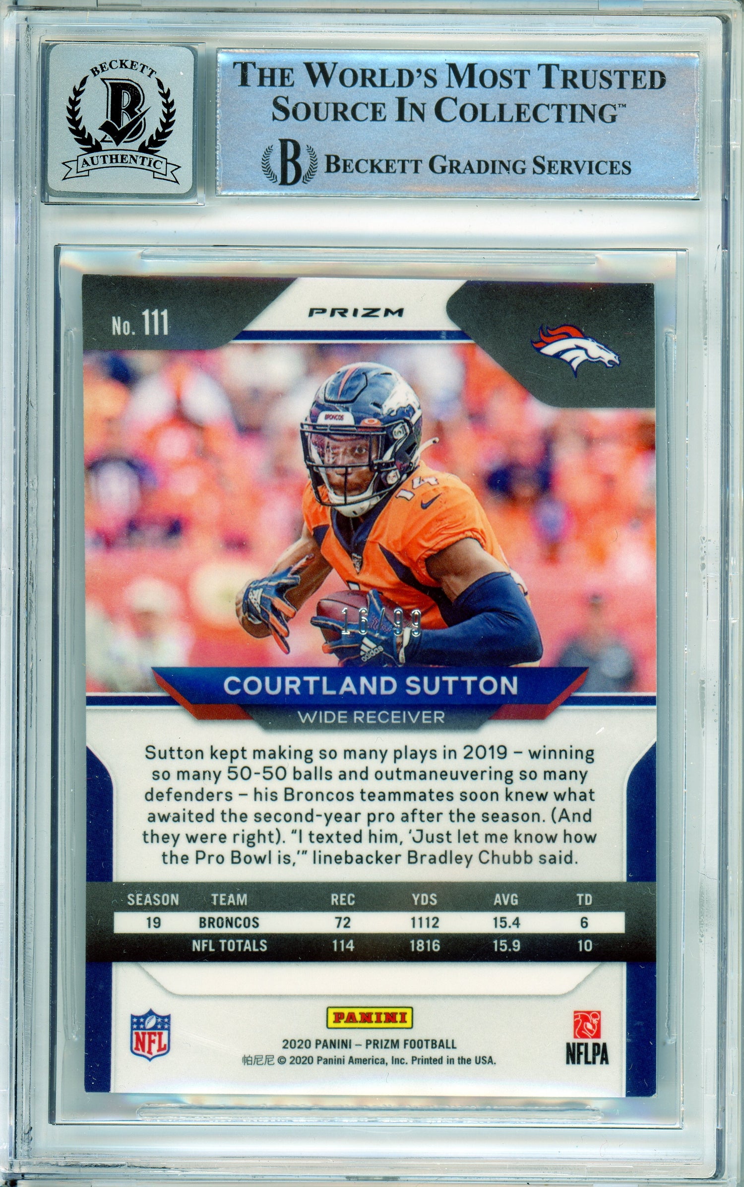 2020 Panini Prizm Blue Cracked Ice #111 Courtland Sutton Denver Broncos BGS Autograph 10