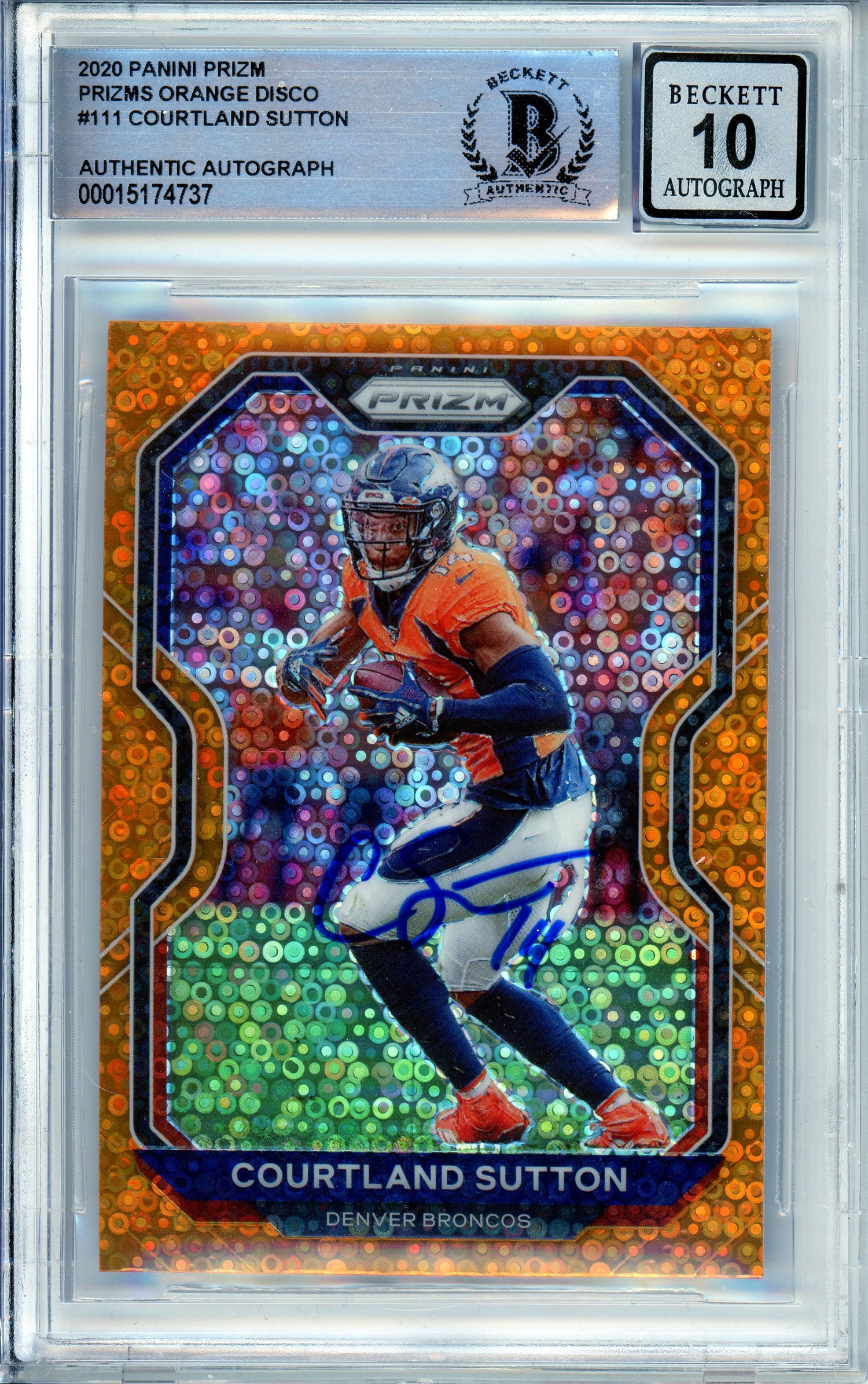 2020 Panini Prizm Orange Disco #111 Courtland Sutton Broncos BGS Autograph 10