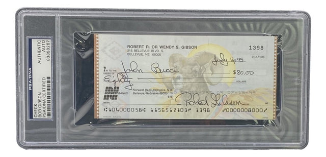 Bob Gibson St. Louis Cardinals Signed Slabbed Bank Check #1398 PSA/DNA