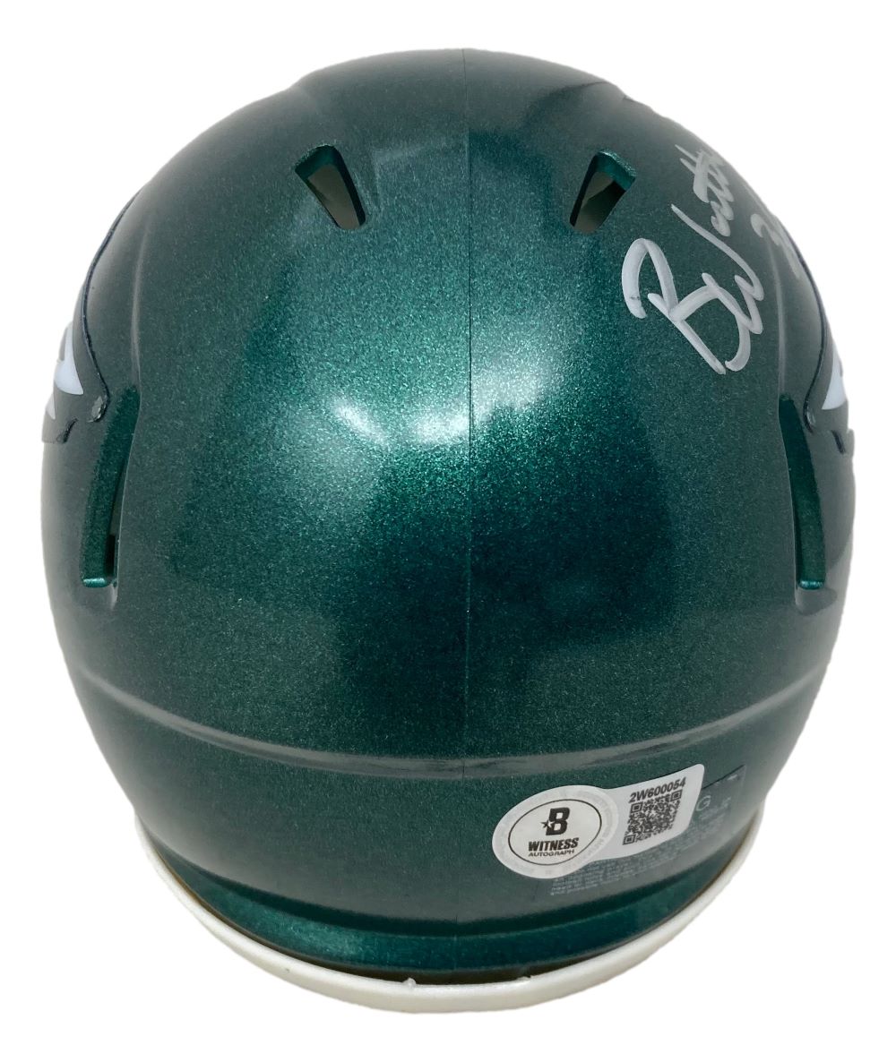 Own a piece of Philadelphia Eagles history with this Brian Westbrook signed mini speed helmet. A dynamic playmaker and fan favorite, Westbrook was a key force in the Eagles' offense, making this autographed helmet a must-have for collectors and die-hard fans alike. This collectible comes with an official Beckett hologram and certificate of authenticity, ensuring its legitimacy and lasting value.