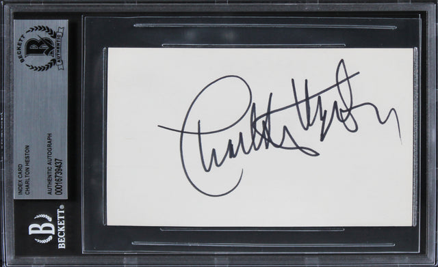 Charlton Heston Ben-Hur Authentic Signed 3x5 Index Card BAS Slabbed 1