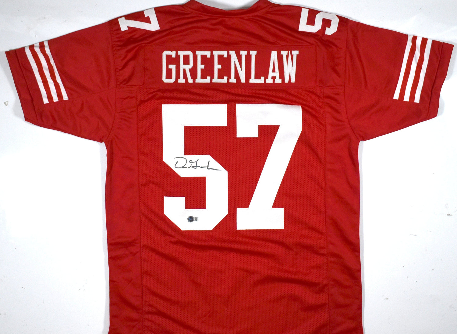 Dre Greenlaw Autographed Red Pro Style Jersey - Beckett W Hologram *Black is backordered and will ship as soon as it is back in stock.