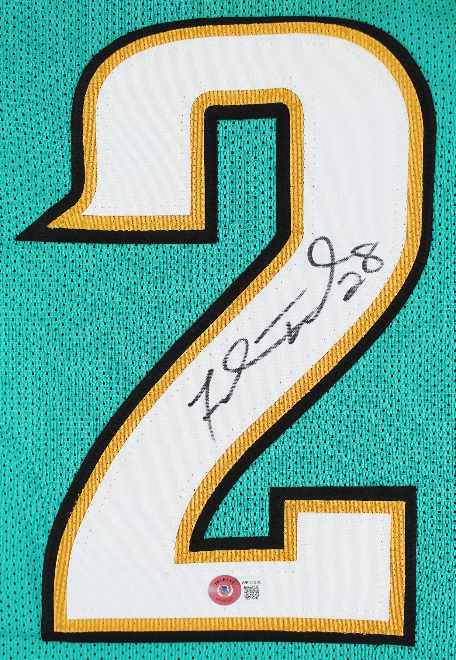 Own a piece of Jacksonville Jaguars history with this Fred Taylor Autographed Teal Pro Style Jersey—a must-have for any serious collector or devoted fan. As one of the most prolific running backs in Jaguars history, Fred Taylor left an unforgettable mark on the franchise. This jersey is 100% Authentic, authenticated by Beckett Authentication Services (BAS), ensuring its legitimacy and value.