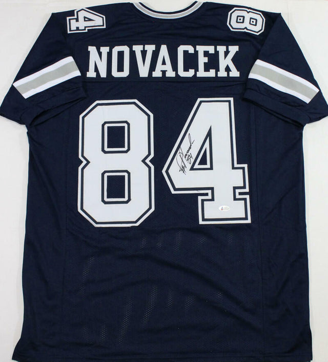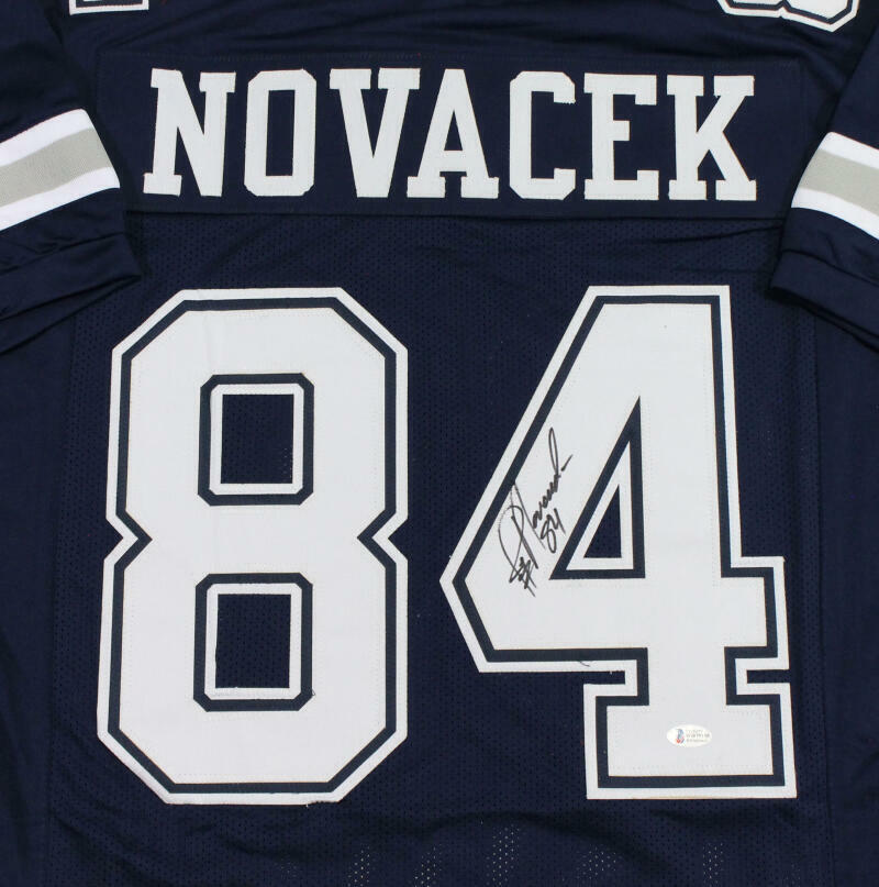 Own a piece of football history with this Jay Novacek Signed Custom Jersey! This authentic-style jersey features stitched letters and numbers and is personally autographed by legendary Dallas Cowboys tight end Jay Novacek.
